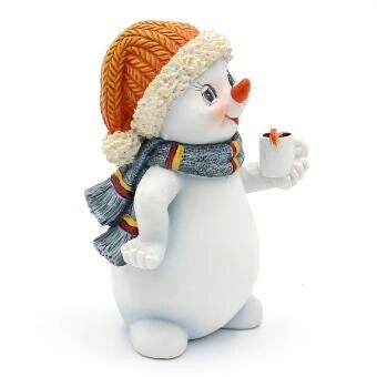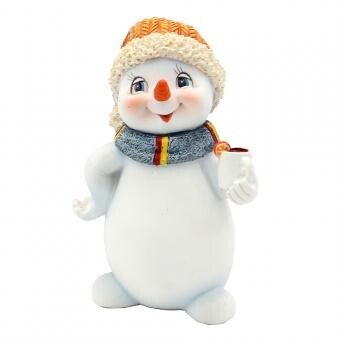 Polyresin Schneekinder mit Mütze orange und Schal grün