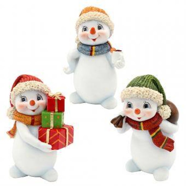 Polyresin Schneekinder mit Mütze rot und Schal orange